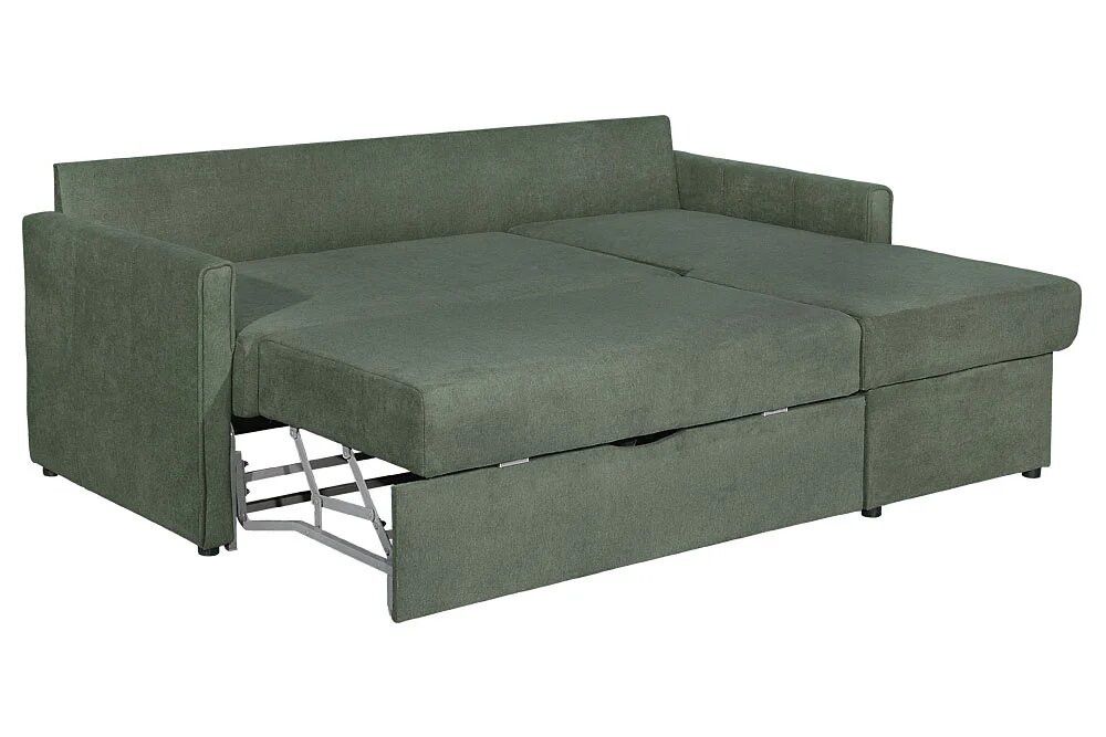 - Каркас диванной части, спального места и сиденья оттоманки: металлический
